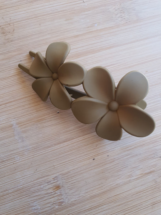 Khaki Twin flower 10cm Hairclip